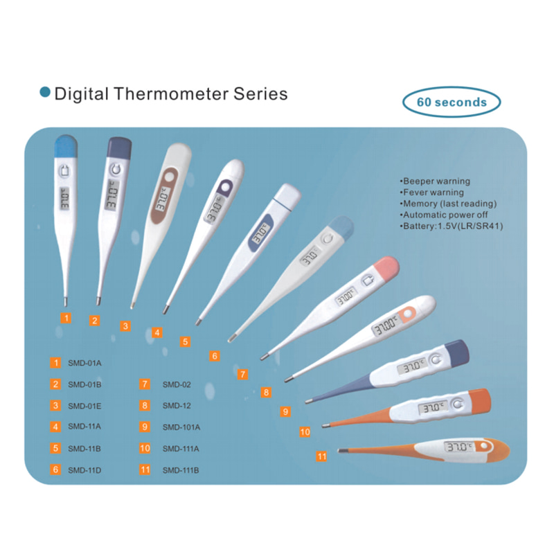 | SMD-01A | 15,5x6,5mm | 127x18X10mm | 10,5 g | 32.0℃-42.0℃ 89,6F-107,6F | ±0,1℃(35,5℃ -42,0℃)/ ±0,2F(95,9F-107,6"F) ±0,2℃(<35,5℃) ±0,4F(<95,9F) | 0,1℃/ 0,1F | 60 de secunde | ||