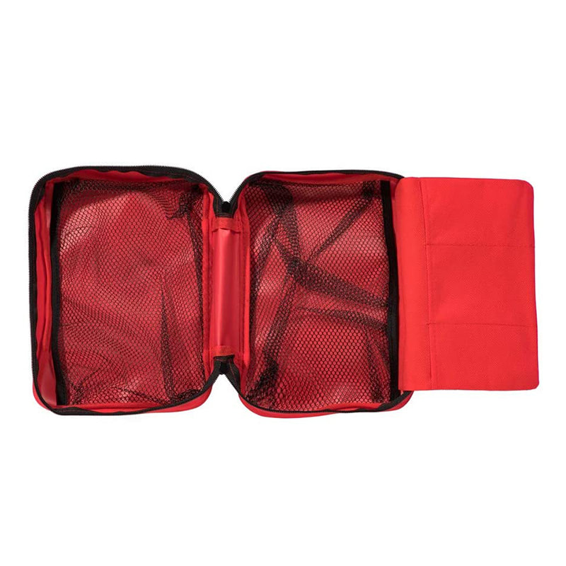 Geanta versatilă de prim ajutor are buzunare cu plasă, precum și o parte pliabilă pentru a permite mult spațiu de depozitare.