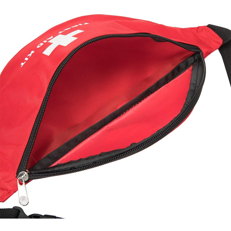 See DetailsAcesta este un rucsac roșu de prim ajutor reglabil, cu dimensiunea principală de 11x5,5x3,5 inchi/28x14x9cm, care are o calitate bună a produsului, cusături și cusături durabile.