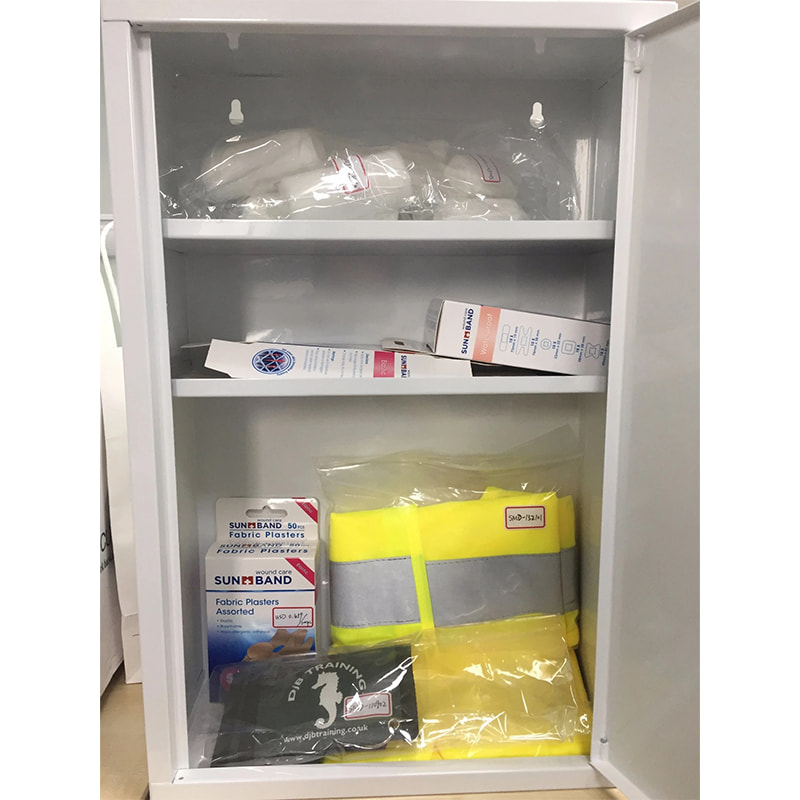 Dulapul metalic de prim ajutor poate fi vândut gol sau umplut cu materiale de prim ajutor alese de dvs.