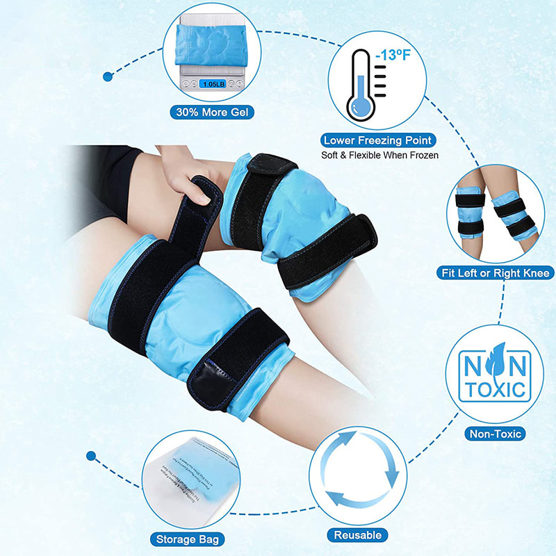 Pachetele de gheață pentru leziuni reutilizabile au design reversibil, potrivite pentru genunchiul stâng sau drept și potrivire universală pentru oameni.
