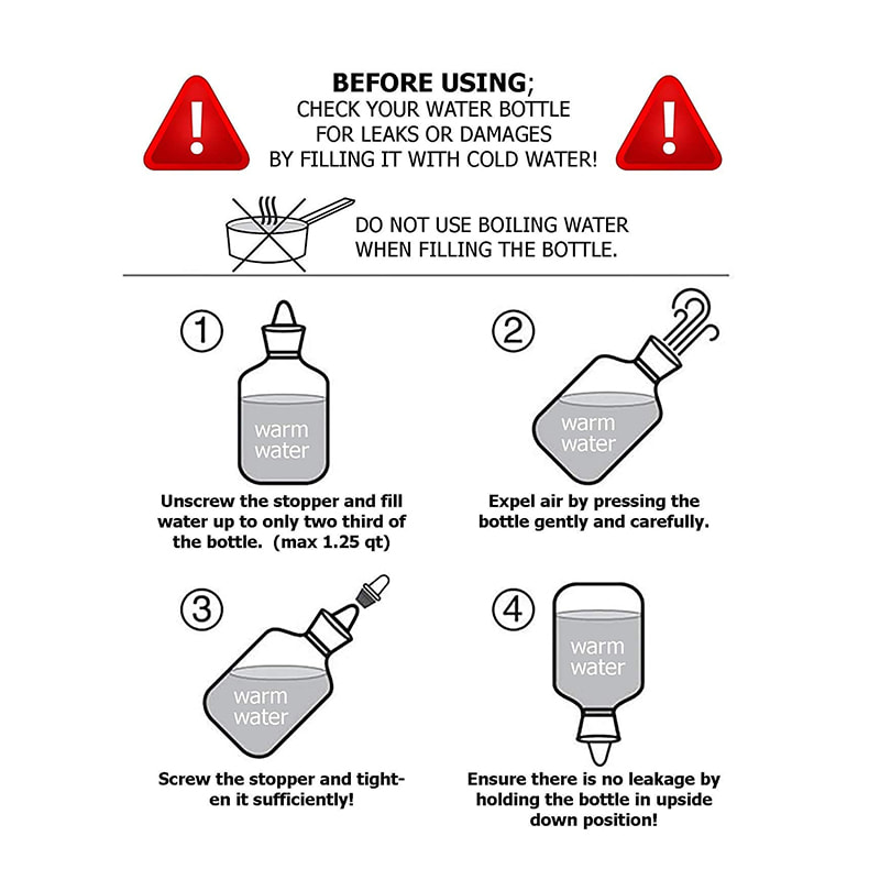 Sticla cu apă fierbinte poate fi folosită singură ca remediu pentru dureri, dureri și leziuni sportive, cum ar fi durerile de spate, gât și umăr, dureri musculare, crampe menstruale și tensiune.