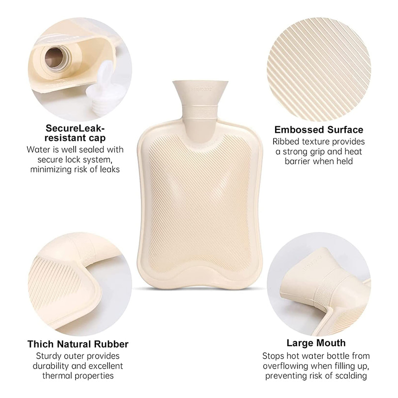 Gura lată este ușor de umplut, iar buza anti țâșnire a sticlei cu apă fierbinte cu capac împiedică scuipatul de apă ca acele vechi din cauciuc.
