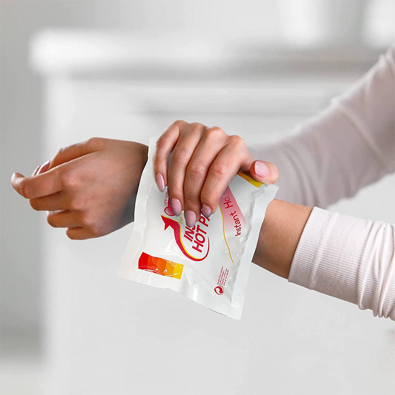 Folosind pachetul fierbinte instantaneu, trebuie să strângeți punga interioară cu mâinile pentru a face umplutura să reacționeze și să-și elibereze căldura.