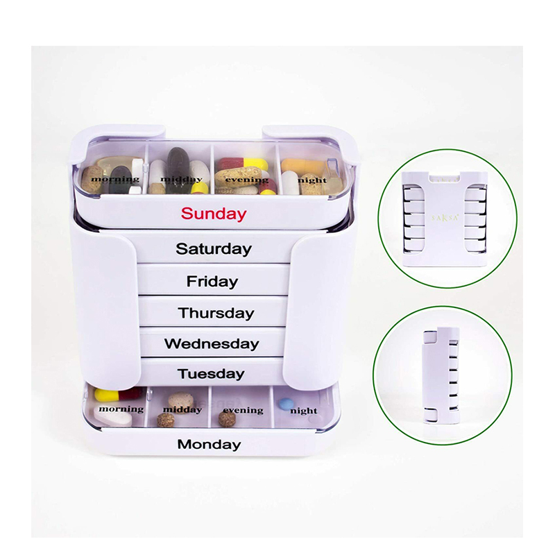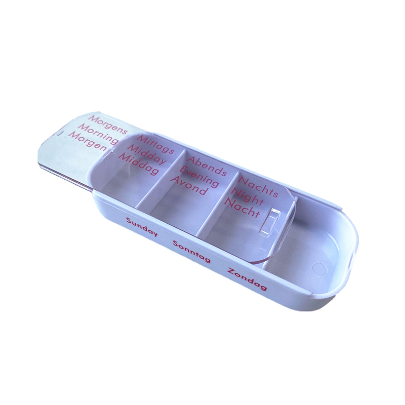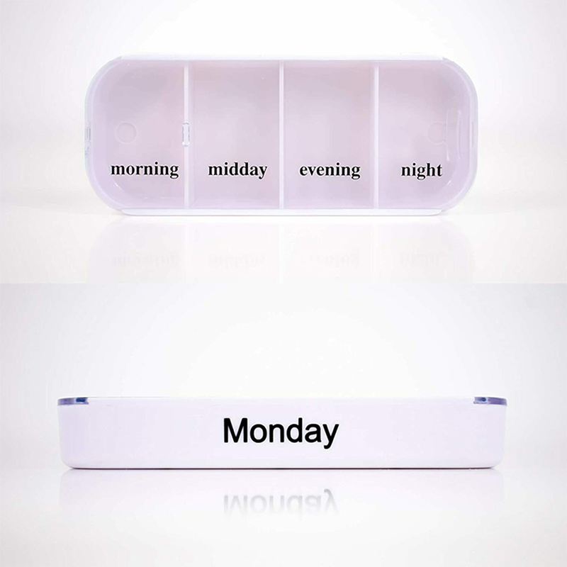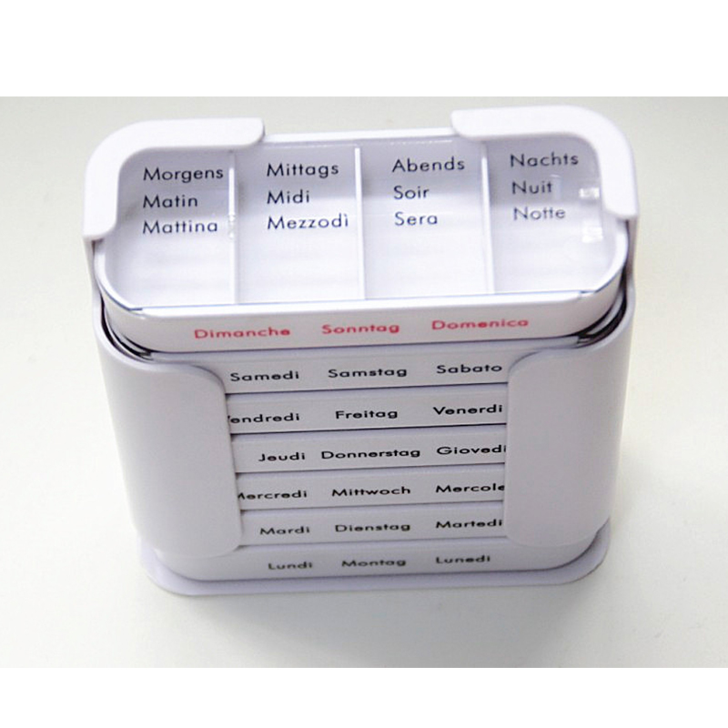 Fiecare tavă este dedicată pentru o zi a săptămânii și are patru compartimente cu etichetă de dimineață, prânz, seară și noapte.