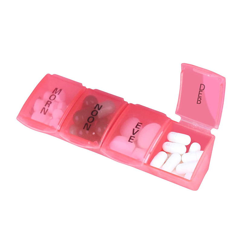 Fiecare tavă este împărțită în 4 compartimente. Organizator de suplimente cu capace separate, memento de pastile poate fi purtat cu tine