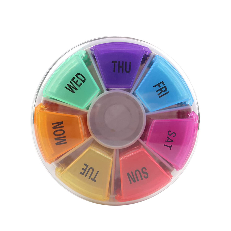 Fiecare cutie compactă de medicamente este imprimată cu pictogramele pentru data și ora săptămânii, iar fiecare cutie de pastile săptămânală poate fi distinsă cu ușurință prin 7 culori diferite.
