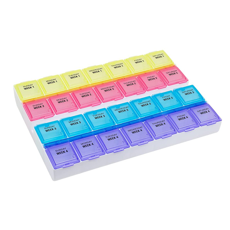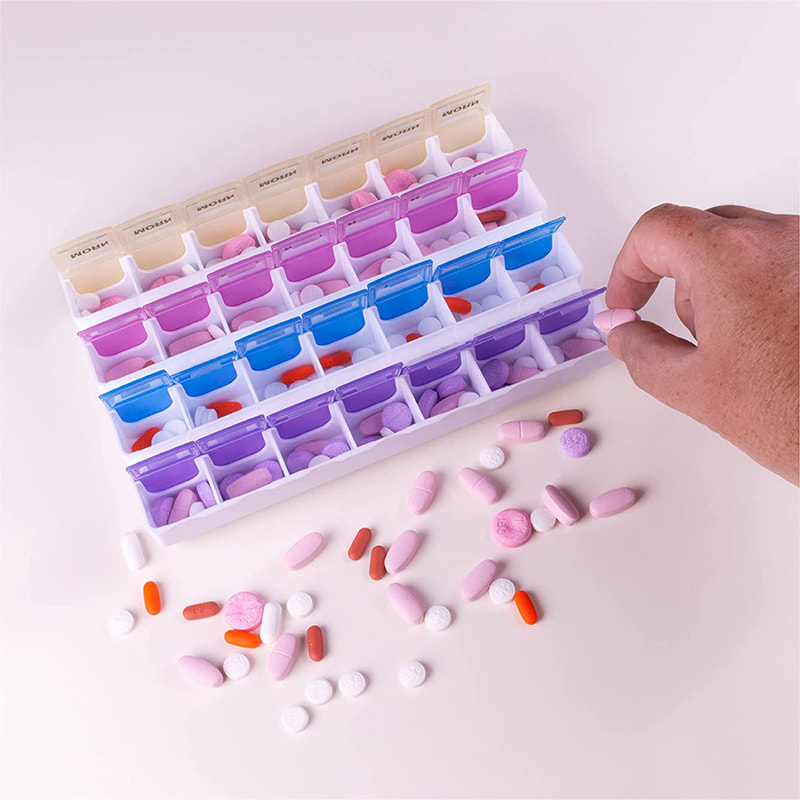 Vedeți cu ușurință dacă v-ați luat medicamentele cu acest organizator de pastile ușor de deschis, de 4 ori pe zi, pentru toate cele 7 zile ale săptămânii.