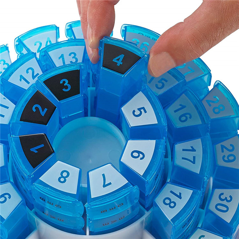 Designul circular permite, de asemenea, ca organizatorul de pastile să poată fi așezat cu ușurință pe un blat, permițându-vă totodată să luați zilnic medicamentele cu dvs. oriunde ați merge!