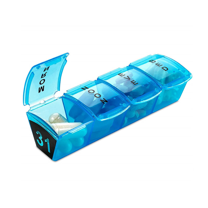 Primești 31 de organizatoare zilnice care conțin fiecare 4 compartimente, AM, Noon, PM și Pat.