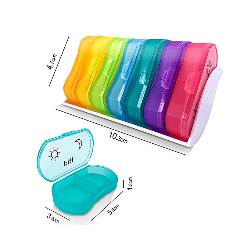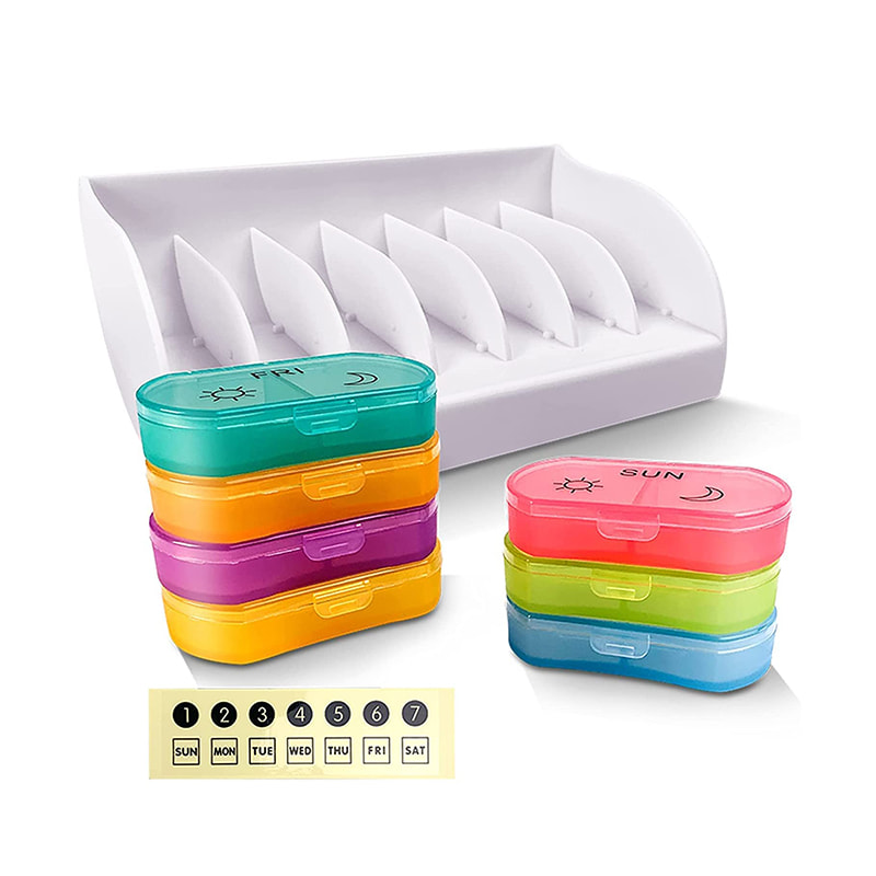 Acest recipient zilnic pentru pastile are etichete mari, ușor de citit pe fiecare compartiment, astfel încât să vă puteți găsi întotdeauna medicamentul fără efort.