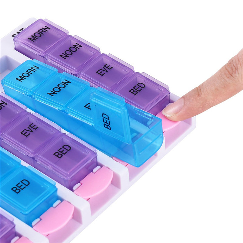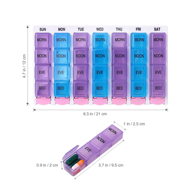 UTILIZARE Ușoară: butoanele de apăsare și fundul rotunjit, face ca organizatorul de pastile să fie ușor de deschis, iar medicamentele să fie ușor de recuperat