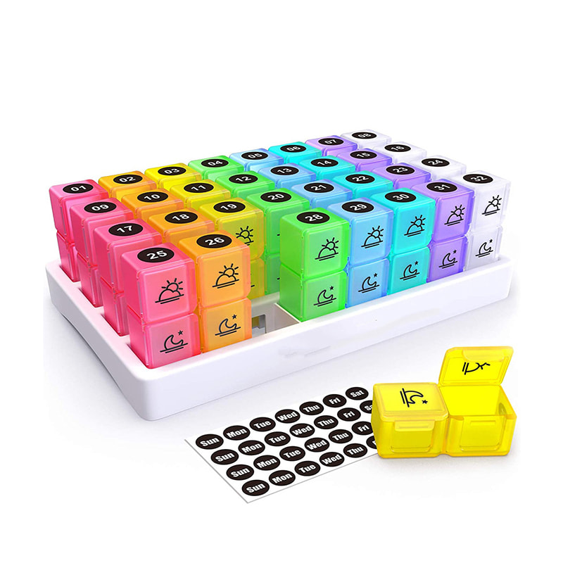 Organizatorul nostru lunar pentru pastile de 31 de zile are 32 de cutii individuale translucide, luminoase și colorate, numerotate, pe care le veți putea verifica pentru a vedea dacă ați luat pastilele pentru ziua respectivă și astfel nu va trebui să păstrați mai multe cutii de pastile.