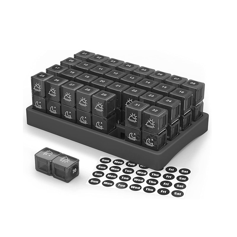 Cu acest dozator lunar de pastile, puteți prinde fiecare cutie zilnică individuală de care aveți nevoie pentru ziua respectivă și o puteți arunca în geantă sau buzunarul din spate și nu vă faceți griji că nu vă mai uitați pastilele!