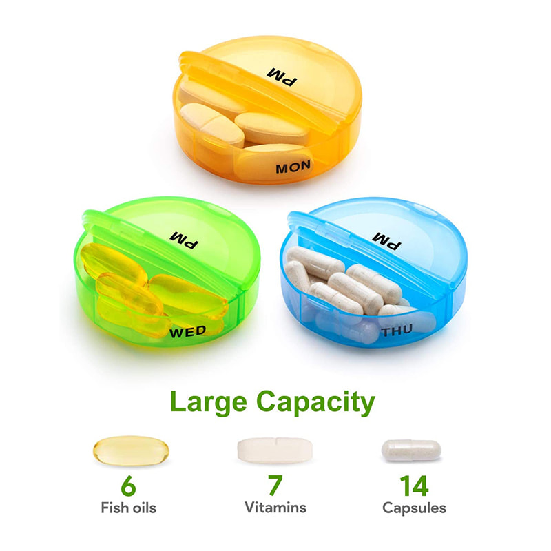 Organizatorul zilnic pentru cutie de pastile este detașabil și include 7 compartimente mari, a căror dimensiune este la fel de mare ca palma mâinii tale.