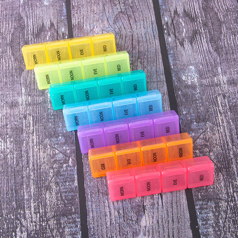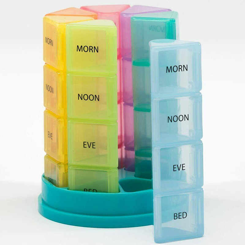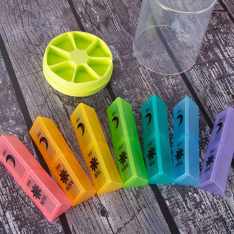Fiecare cutie compactă pentru medicamente este imprimată cu pictogramele pentru data și ora săptămânii, iar fiecare cutie săptămânală pentru pastile poate fi distinsă cu ușurință prin 7 culori diferite.