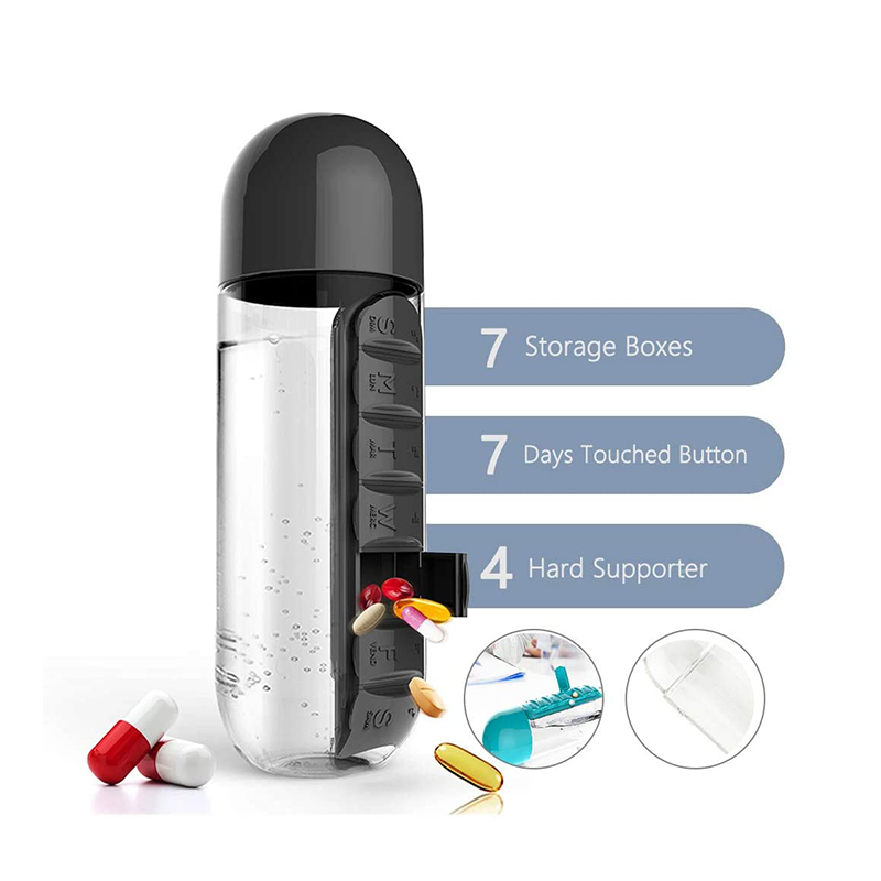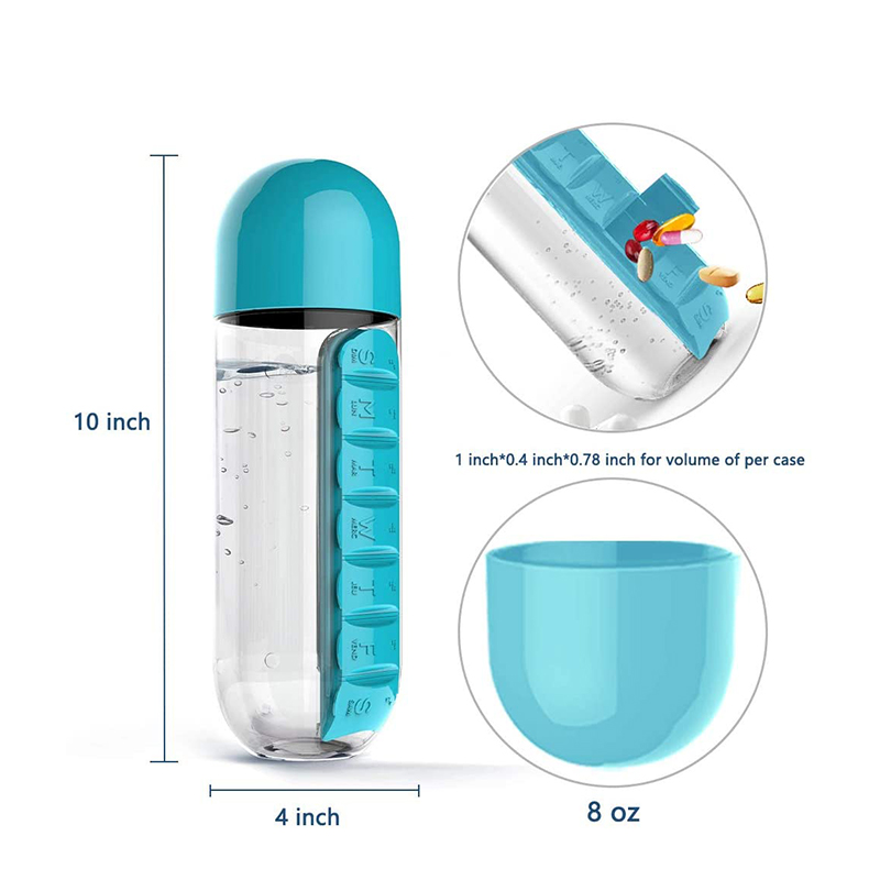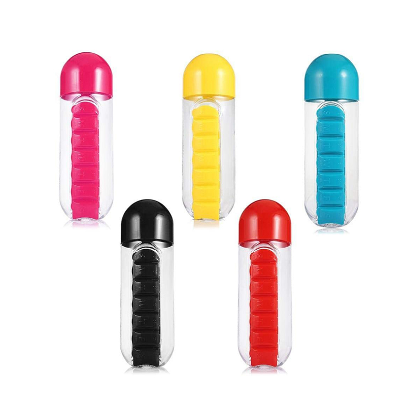 Du-ți sticla de apă cu organizator de pastile la birou, camping, școală, sală și explorează peste tot.