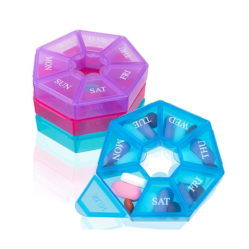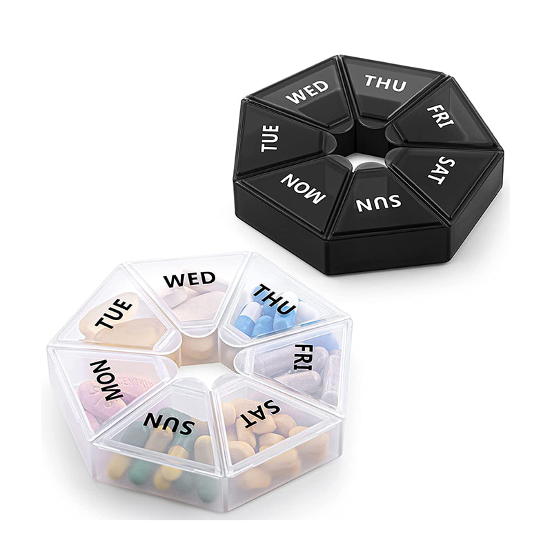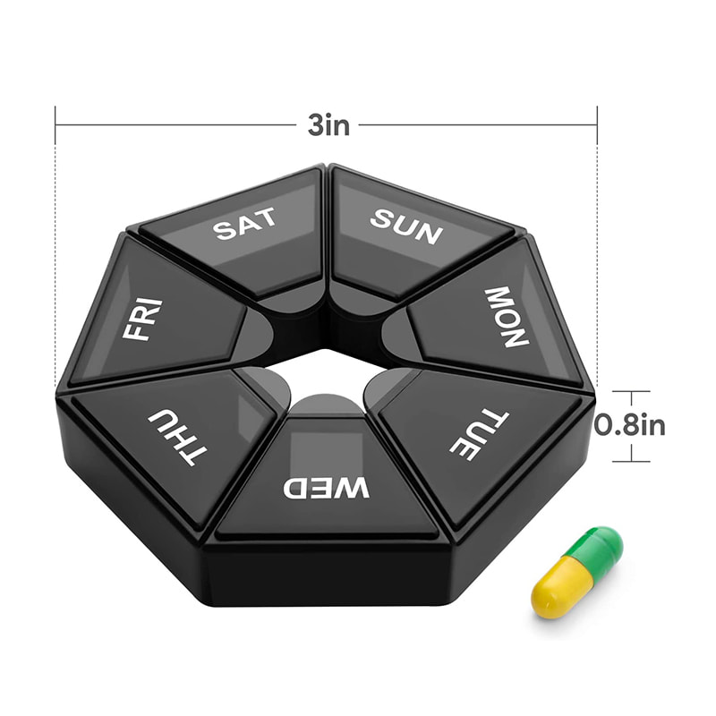 Diametrul de 4 inci este mai mare decât alte cutii de pastile cu 7 fețe, suficient de mare pentru a stoca mai multe pastile zilnice.