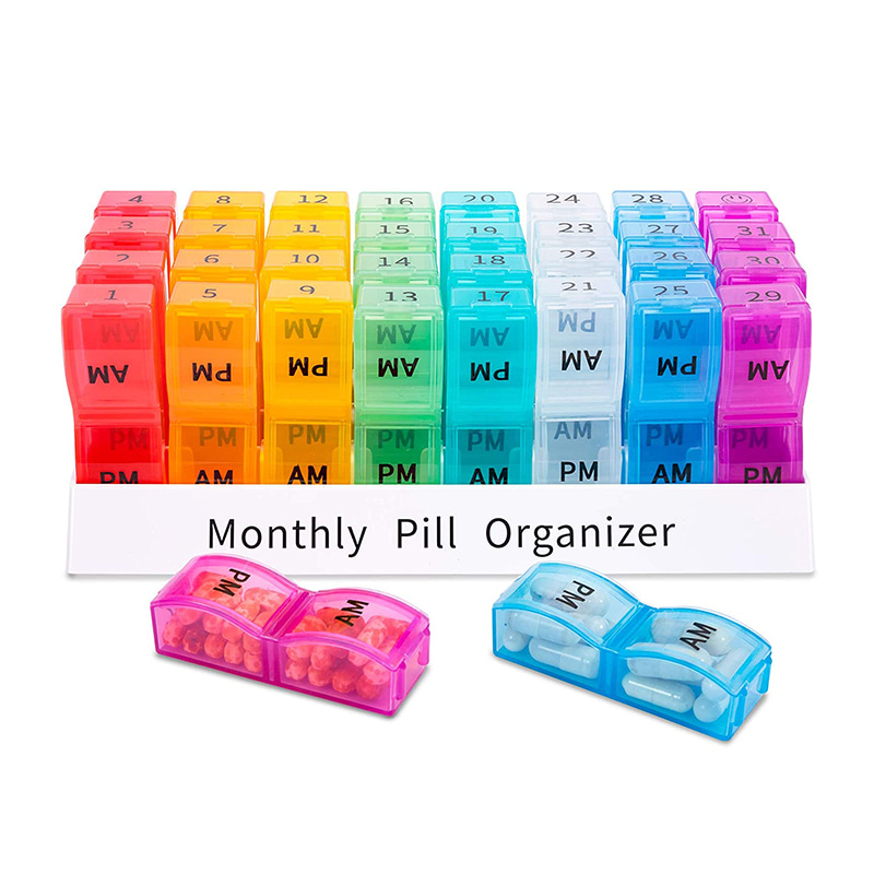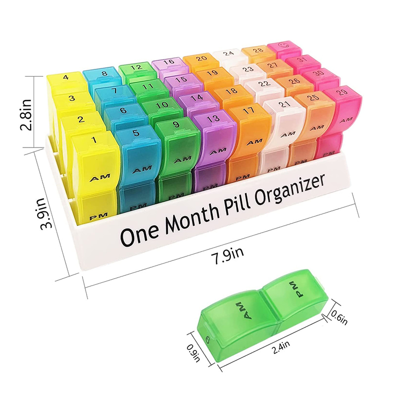 Organizatorul lunar colorat de pastile vă sortează suplimentele și/sau tabletele cu o lună în avans în compartimente convenabile zilnice dimineața/pm.