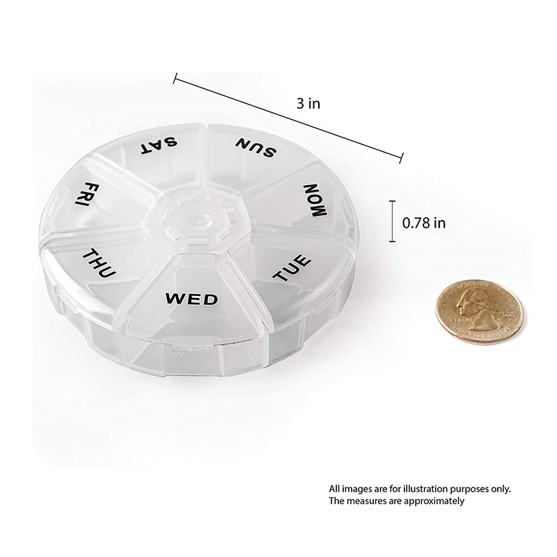Acest organizator de pastile are doar 3 inci, suficient de mic pentru a încăpea în buzunar! Fabricat din plastic translucid robust și durabil.