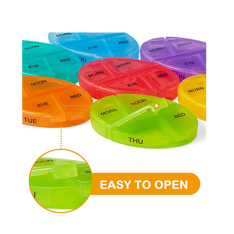 Fiecare organizator zilnic de pastile are capace cu închidere rapidă pentru a rezista la deschidere, chiar și atunci când scapă. Eficient pentru a preveni vărsarea pilulei.