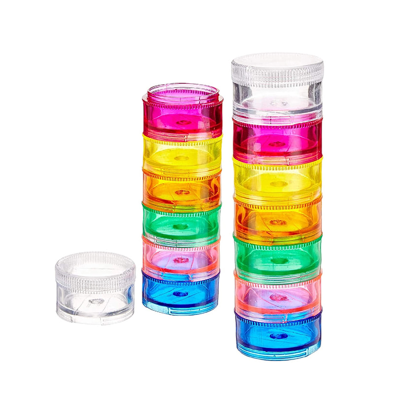 Flexibilitatea numărului de recipiente pentru pastile pe care le puteți stivui împreună și diferitele dimensiuni din care puteți alege face ca recipientele stivuibile să fie un plus convenabil pentru geanta dvs. de călătorie.