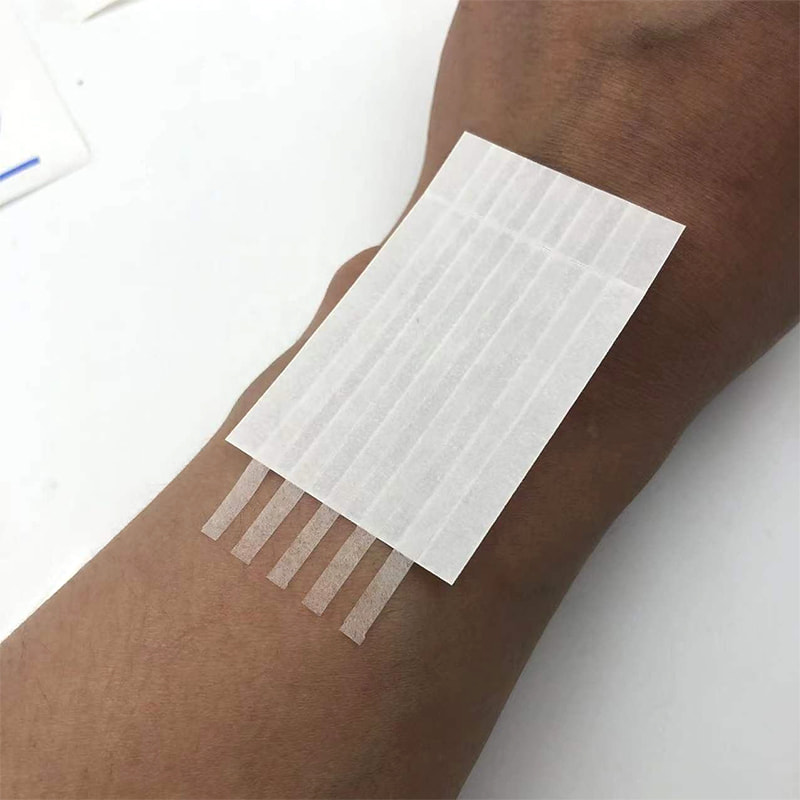 1) Banda sterilă, flexibilă pentru închiderea plăgii, previne redeschiderea rănilor minore și ajută la reducerea sângerării
