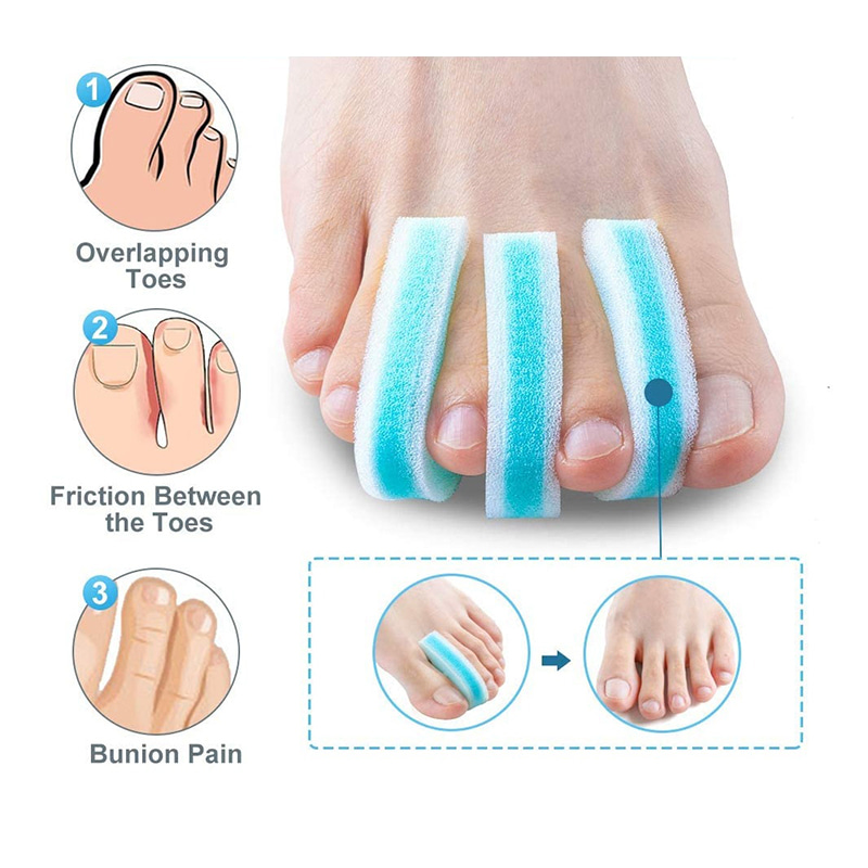 Tampoanele noastre din spumă pot absorbi presiunea și frecarea dintre degetele de la picioare pentru a ajuta la reducerea durerii de picior de la bataturi, vezicule și multe altele.