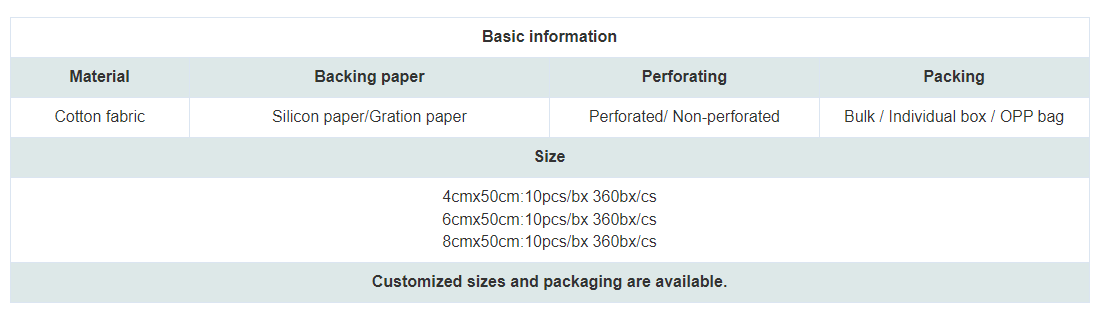 Cotton wound dressing is a kind of sheet or roll wound dressing, made of adhesive coating cotton fabric, absorbent pad and release layer. Se foloseste pentru primul ajutor si pansarea temporara a ranilor mici, abraziunilor, ranii taiante sau a altor rani superficiale.